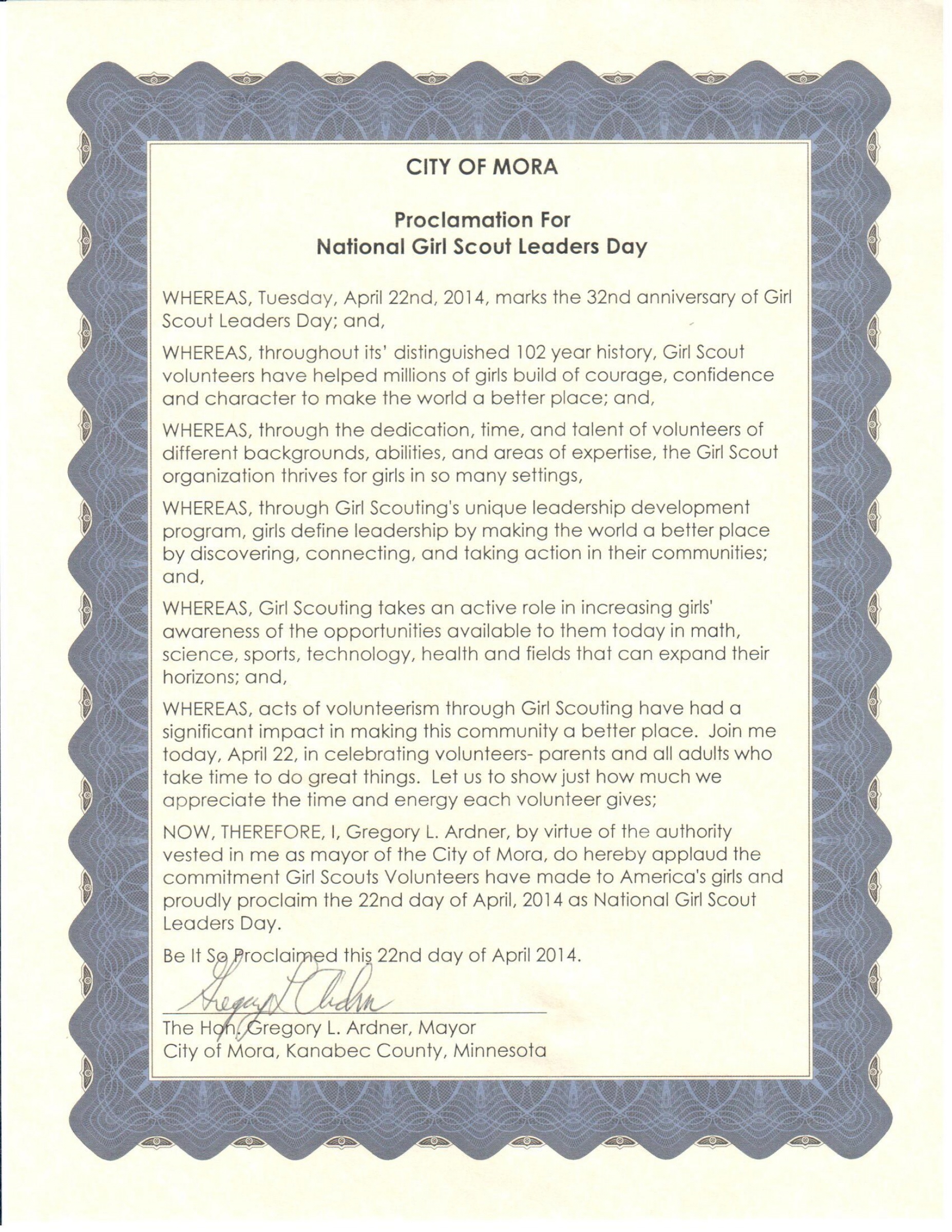 Please see attached ~ Today is National Girl Scout Leader's Day!