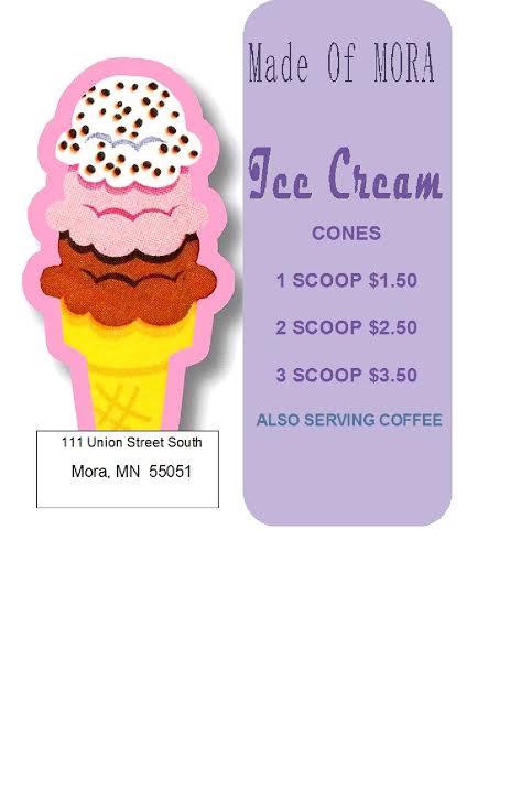 We now serve ice cream cones and coffee.